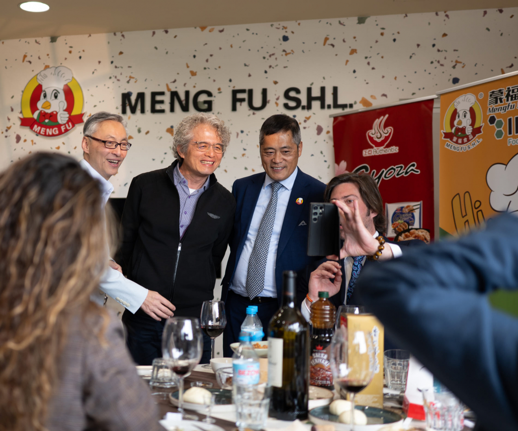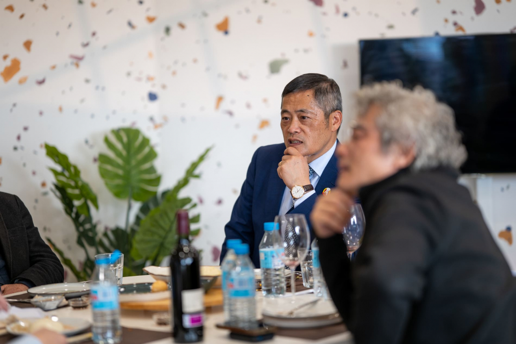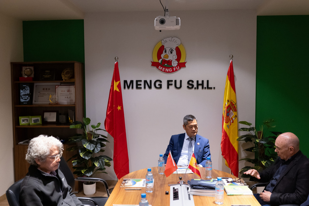 La sede central y fábrica de Meng Fu en Madrid se transformó en una embajada de conocimiento donde los socios de la firma —Joan Zhuang (Presidente), Juan Zhuang (Director de Marketing) y Shao Ping Zhuang (propietario de la cadena TAO)— brindaron una cálida acogida a una comitiva de personalidades del mundo empresarial, científico y social.